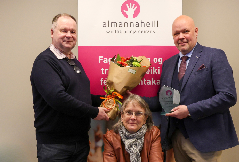 „Tinna er með hlýja og nærandi nærveru, stóran faðm og gerir ekki upp á milli fólks. Hún lífgar upp rýmið fyrir alla,“ sagði Tómas Ingi Torfason, formaður Almannaheilla, þegar hann afhenti Tinnu Björnsdóttur viðurkenninguna sem sjálfboðaliði ársins 2024.